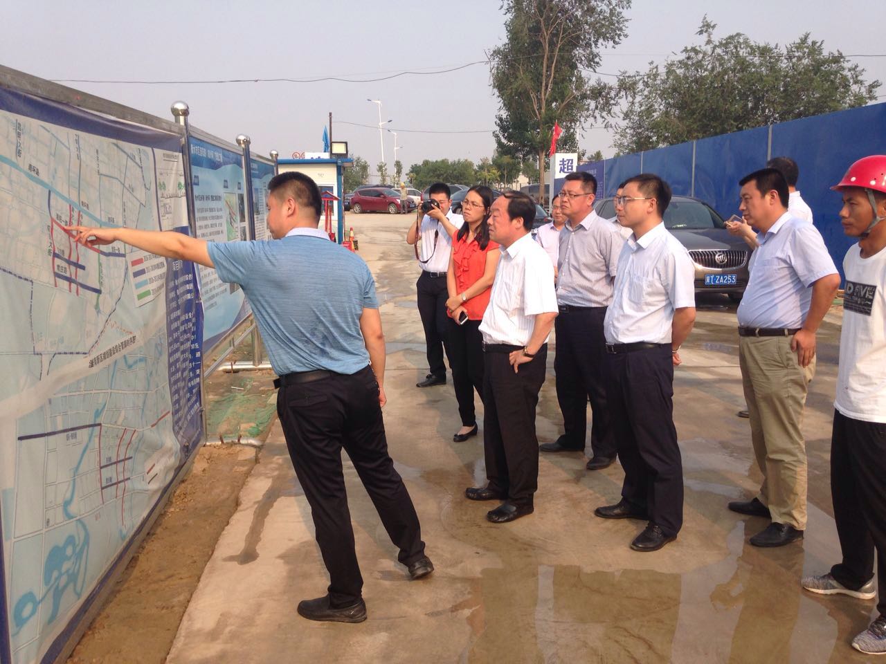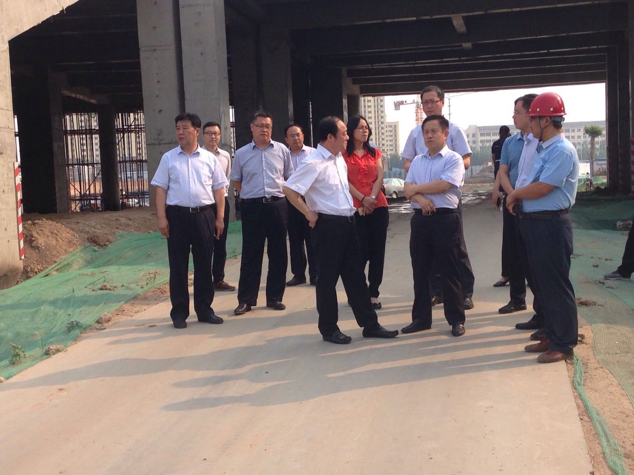 2017年6月20日省国开行陈久宁副行长就南外环综合管廊试验段和奥体中心项目建设情况进行现场调研,集团领导张玉高、赵登宏陪同调研。图为调研现场。