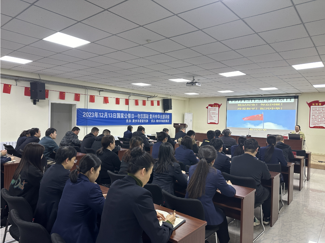 2023年12月13日是第10个国家公祭日,为铭记历史、珍惜和平,市城投集团举办“勿忘国耻 复兴中华”主题讲座活动,特邀市委党校教授、教务处长宋玲者为集团全体党员、干部职工进行专题授课。